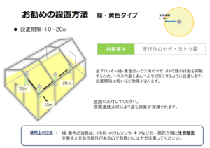 「黄・緑色」は、夜行性のヤガ・ヨトウムシ類の行動を抑制します